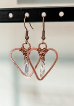 Copper Heart Earrings with Glass Drop
